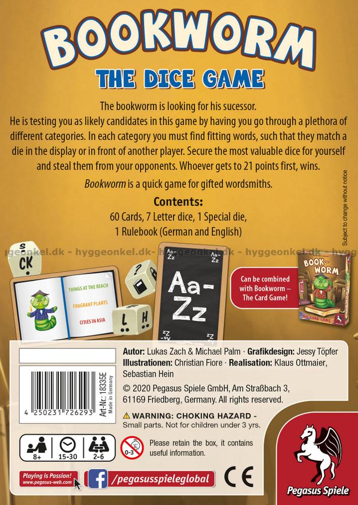 Bookworm är ett roligt spel i vilket man ska hitta på ord inom en bestämd kategori. Man startar varje runda med att vända upp ett kategorikort.