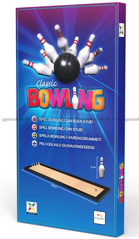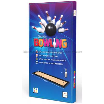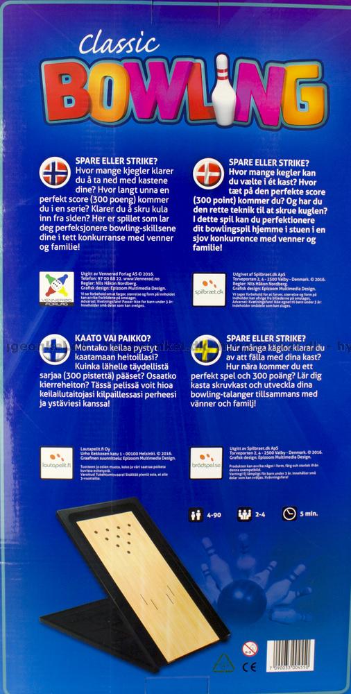 Dessutom ingår 12 käglor i plast (5 cm höga) och 1 "bowlingklot" i metall.