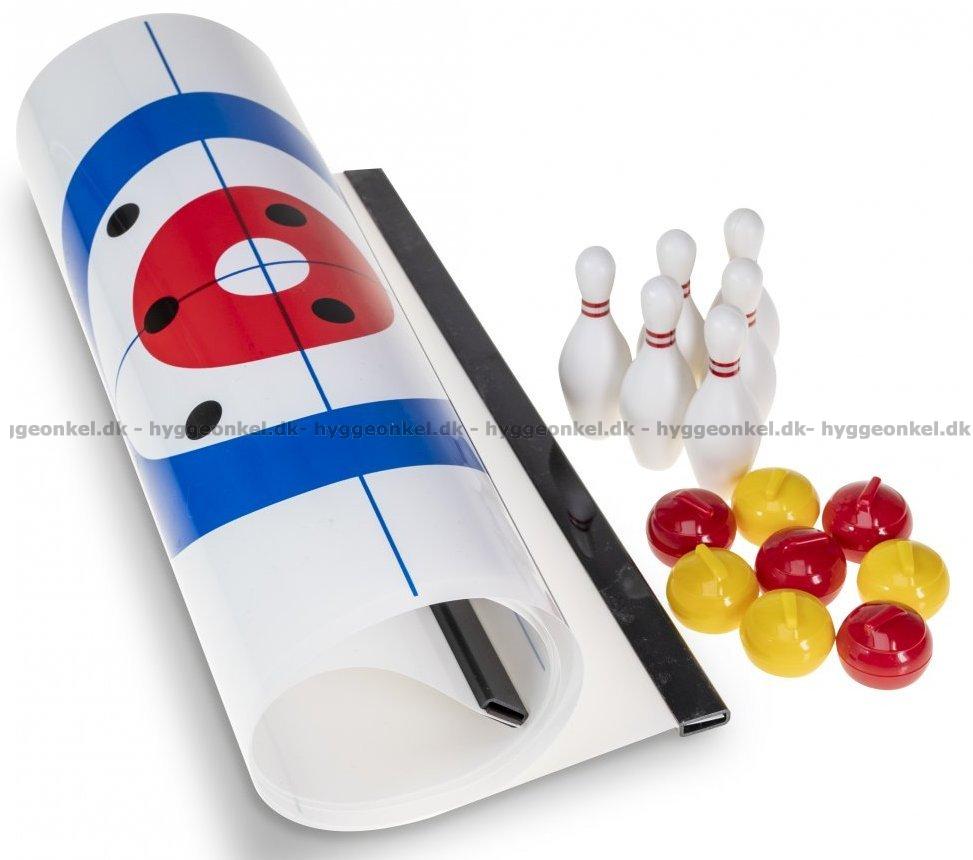 Spela curling och bowling hemma på köksbordet eller vardagsrumsbordet. Det här är ett 2 i ett 1-spel med allt du behöver för båda speltyperna.