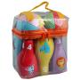 Bowlingsetet kommer i en plastväska med handtag. Väskan mäter 12 x 20 x 22 cm.