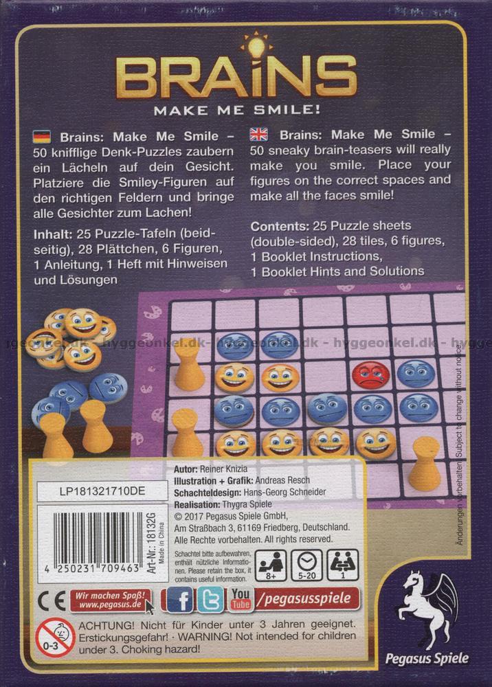 Brains: Make Me Smile är ett roligt logikspel för 1 spelare. Det finns dock givetvis inget som hindrar att ni hjälper varandra!