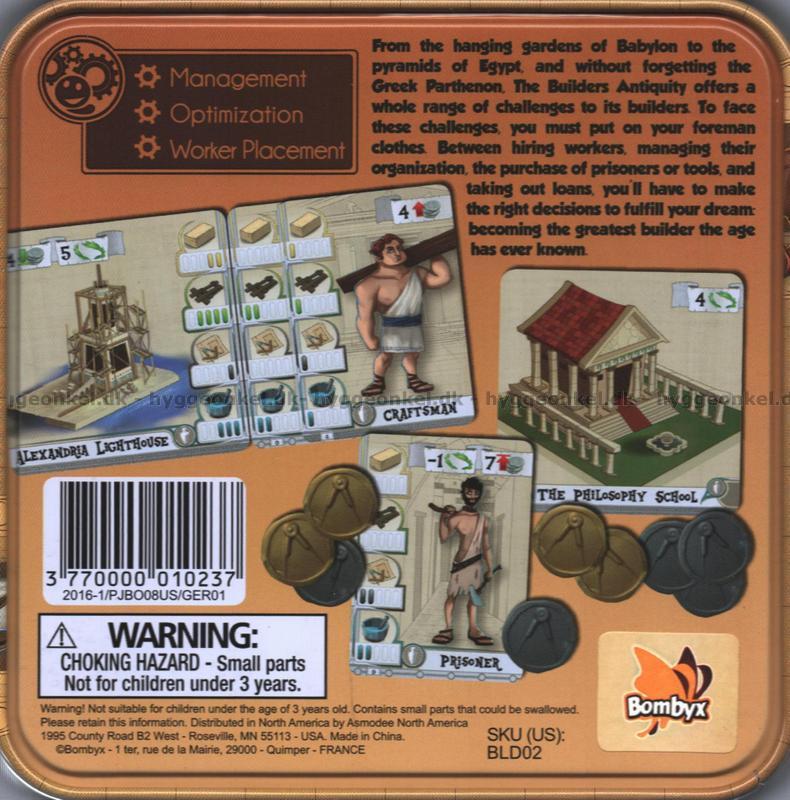 Spelet kommer i en liten metallbox som mäter 13 x 13 x 4 cm.