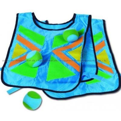Sätt på er kardborrevästar och försök träffa varandra på bröst eller rygg med mjuka bollar.