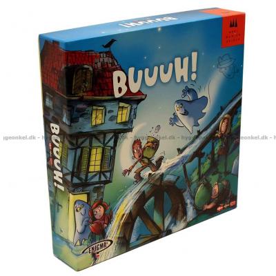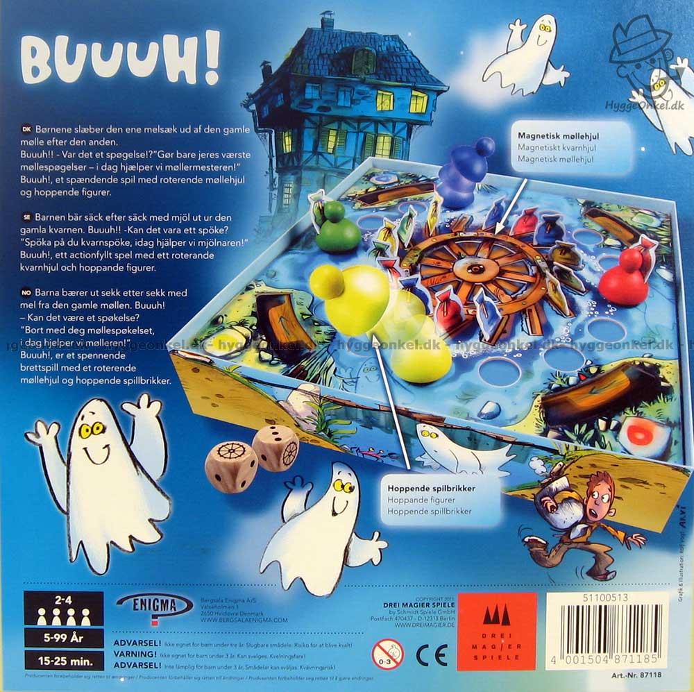 Buuuh! ett actionfyllt spel med ett roterande kvarnhjul och hoppande figurer.