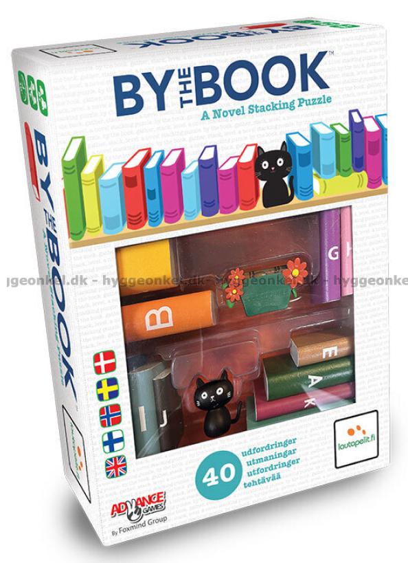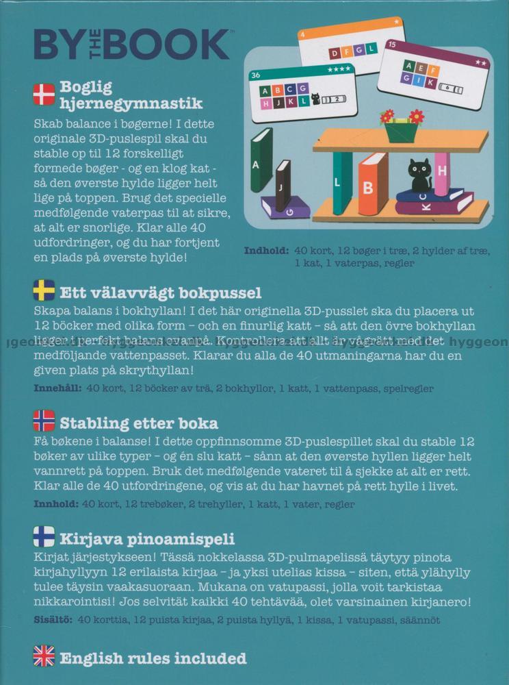 Dra ett uppgiftskort och placera böcker och katt i bokhyllan.
