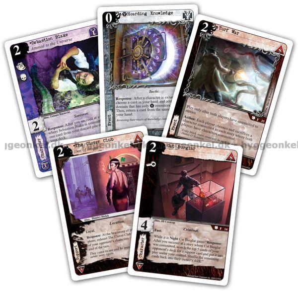Denizens of the Underworld introduces 165 new cards to Call of Cthulhu (three copies each of fifty-five individual cards), roughly two-thirds of which provide members of the Syndicate a host of new names for their rosters, as well as deadly tools, and clever tricks. Additionally, the expansion introduces a new Ancient One and new characters and Tactic events for all of the game’s other factions.