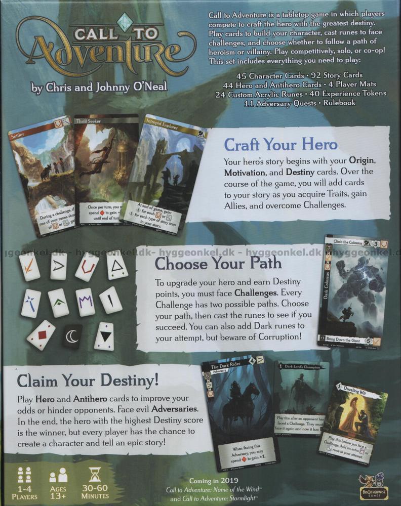 Skriv din egen historia! Call to Adventure är ett spel inspirerat av karaktärsdriven fantasylitteratur och i spelet ska 1-4 spelare skapa hjälten med den mest imponerande historien genom att samla karaktärsdrag, möta motstånd och besegra fiender.