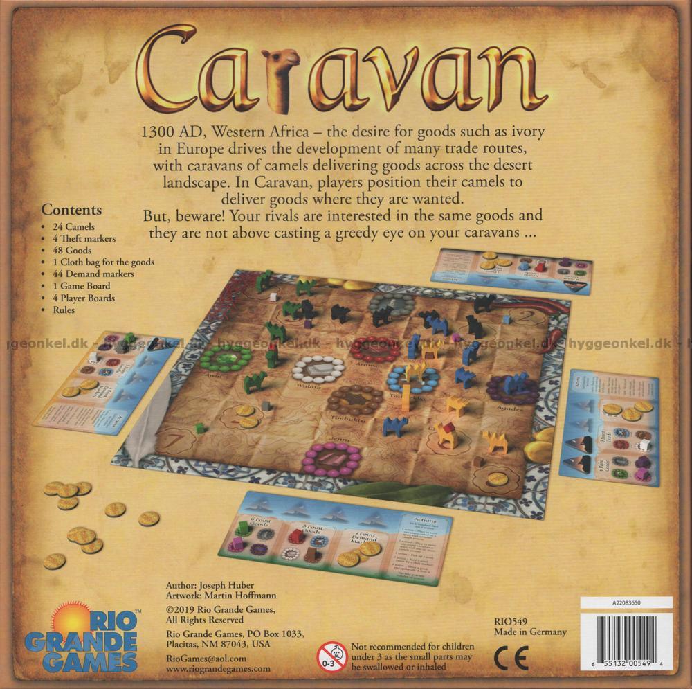 Caravan är ett spel som går ut på att samla ihop varor och sedan transportera dem fram till rätt destination. Du ska transportera salt, kött, vapen eller mer värdefulla varor som elfenben och ädelstenar genom öknen med hjälp av dina kameler. Se bara till att du inte blir bestulen längs vägen.