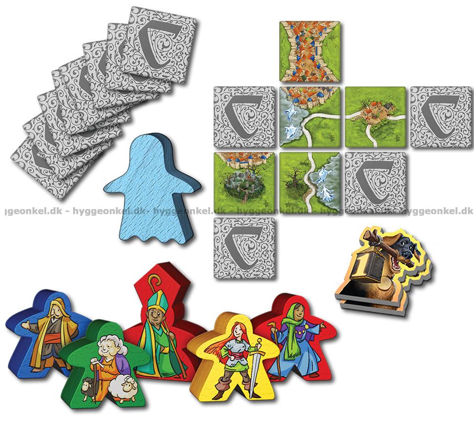 60 landbrickor, 30 följeslagare, 14 andar, 2 hundbrickor och poängtavla.