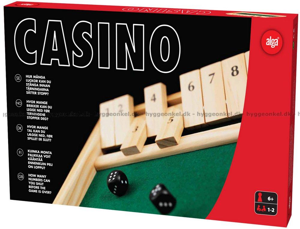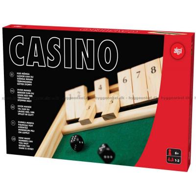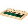 Här får du en fin träutgåva av spelet. Botten av lådan är klädd med filt, så att det inte låter så mycket när tärningarna kastas.