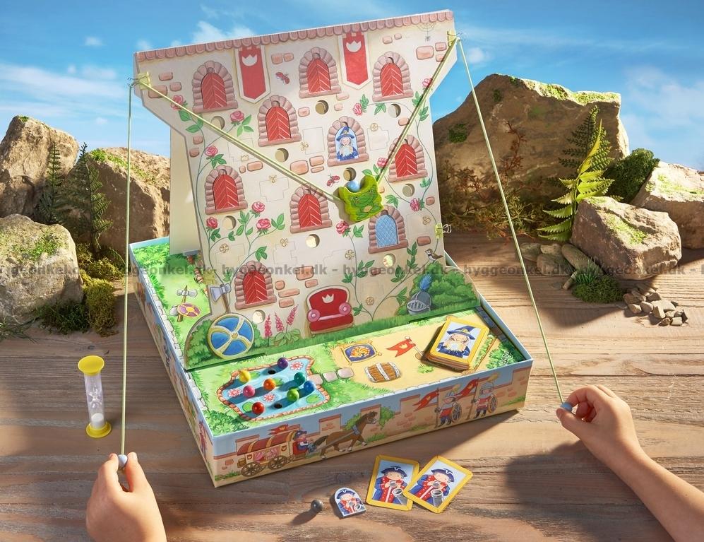 Här bor en groda och den har det stressigt med att hålla reda på alla saker i slottet. Prinsessan kan inte hitta sin gyllene boll, kocken saknar ett kålhuvud och trollkonstnären kan inte hitta sin kristallkula.