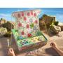 Spelbräde i 3D, kort, marker och timglas. Se bilderna här på sidan för att få en bild av hur det hela ser ut.