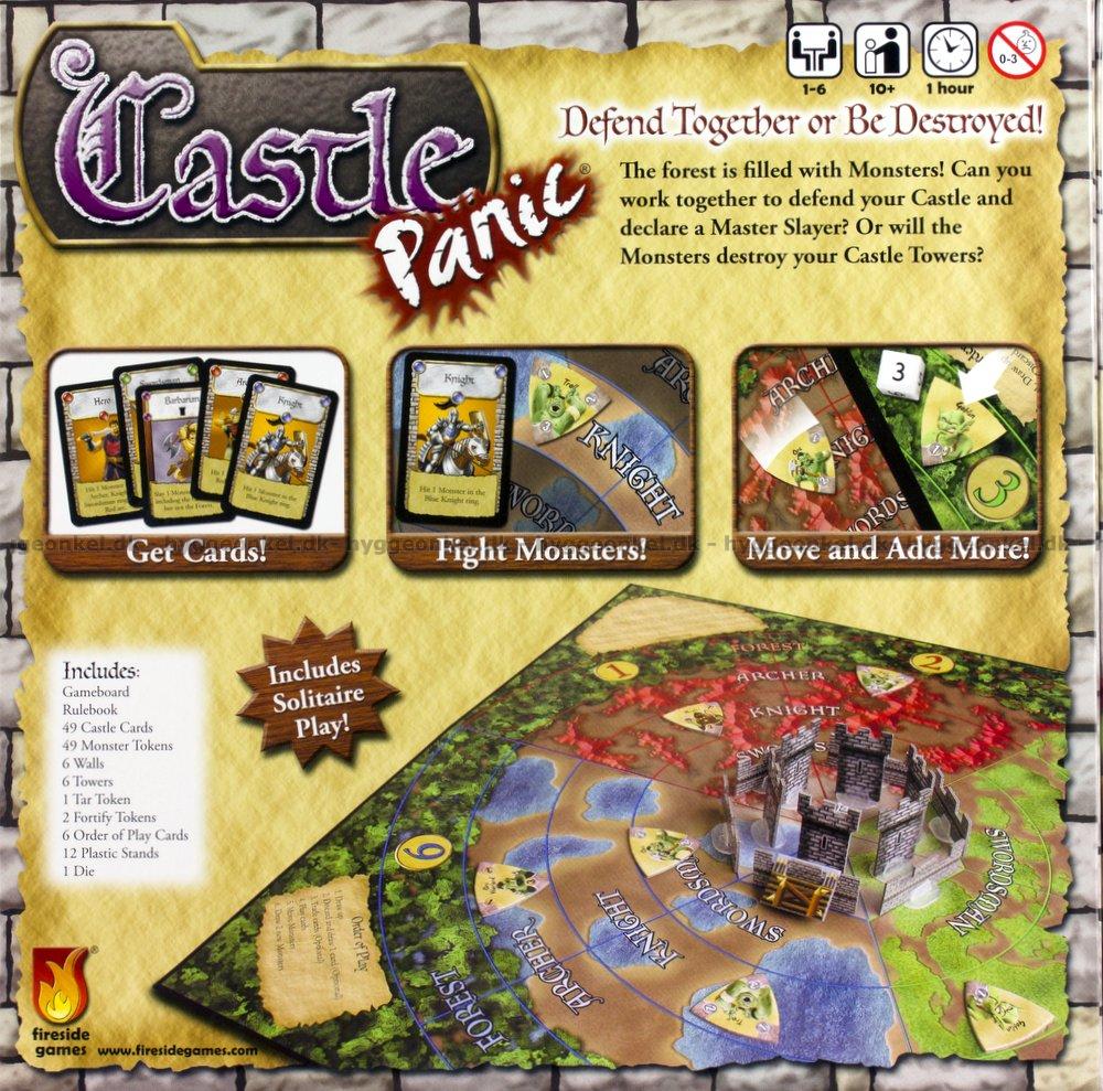 Castle Panic är ett samarbetsspel för 1-6 spelare som alla ska hjälpas åt att försvara borgen. Spelarna ska hjälpa varandra att planera och byta kort så att varje spelare alltid kan göra sitt för att skydda borgen.