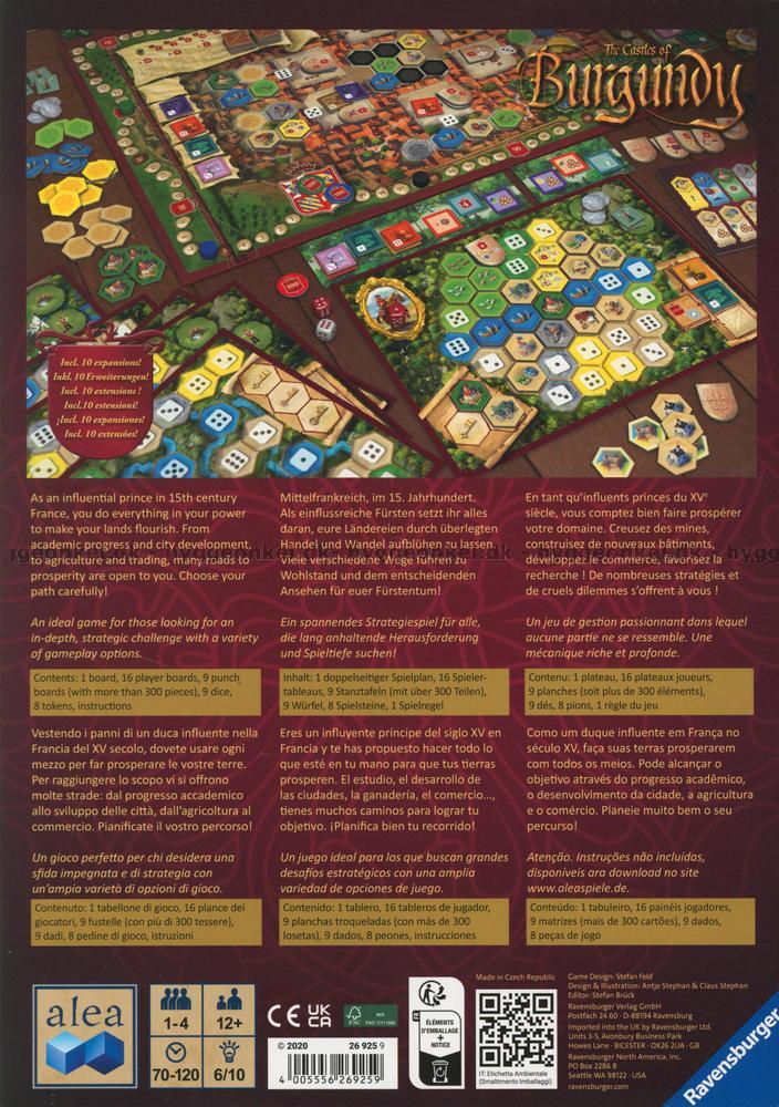 Idag är Bourgogne (Burgundy är det engelska namnet) mest känt för sin vintillverkning, men i Castles of Burgundy handlar spelidén istället om att göra affärer, att bruka jorden, att bygga städer och att bedriva vetenskaplig forskning.