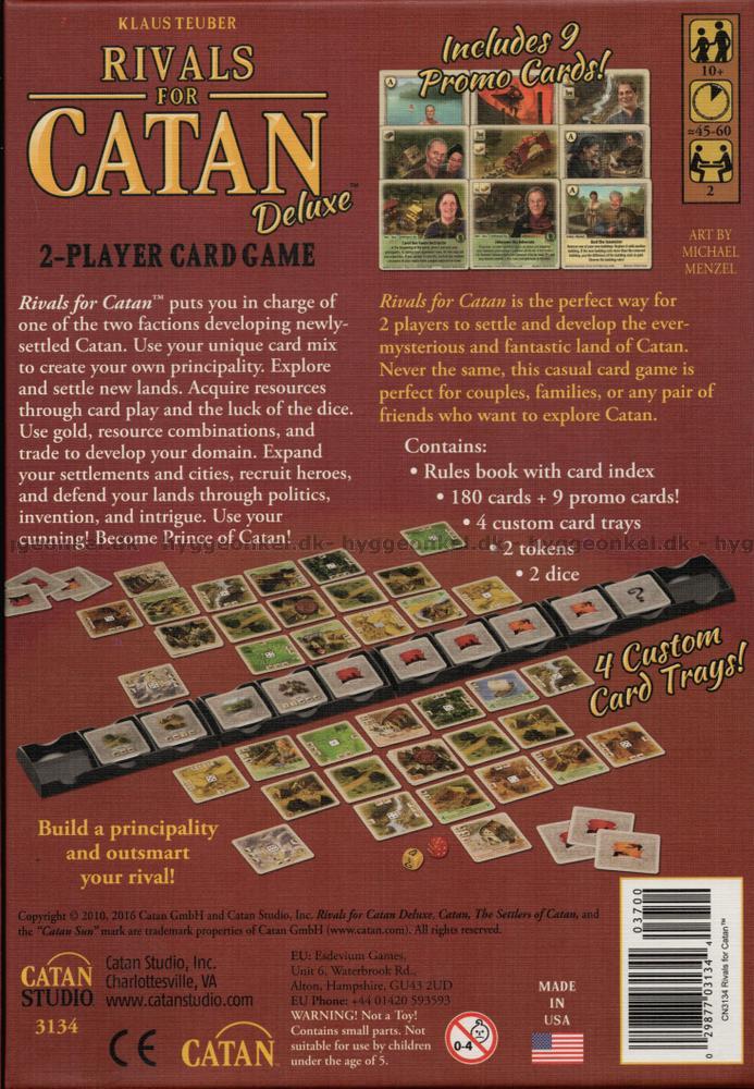 The Rivals for Catan är baserat på det mycket populära brädspelet Settlers of Catan. Detta spel är en kortspelsutgåva för två personer.