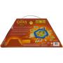 Asken mäter 27 x 12 x 6 cm, när den är hopvikt. Själva spelbrädet mäter 25 x 25 cm. Eftersom det handlar om en utgåva anpassad för resan är korten och pjäserna lite mindre än i originalet.