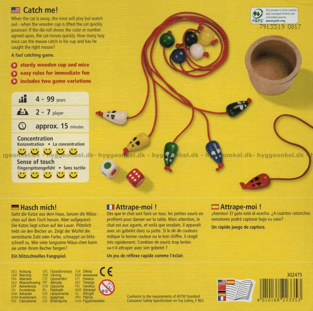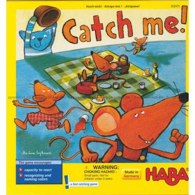 Tärningen visar vilken färg på mössen som katten är ute efter. Lyckas den fånga några innan musen rycks iväg?