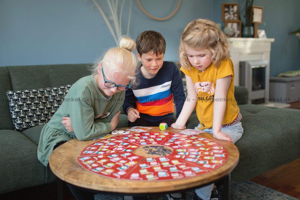 Vem blir först med att hitta rätt katt på spelbrädet? Kasta tärningen som avgör vilken färg du ska hitta.
