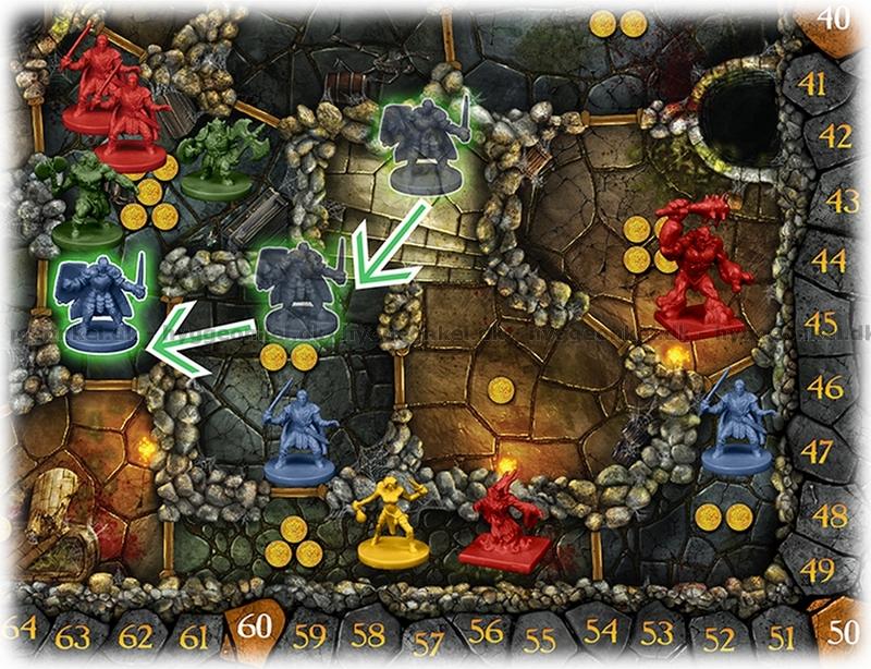 Förutom hjältarna styr spelarna också några av monstren som de kan använda för att förhindra motspelarna att plocka på sig skatter.