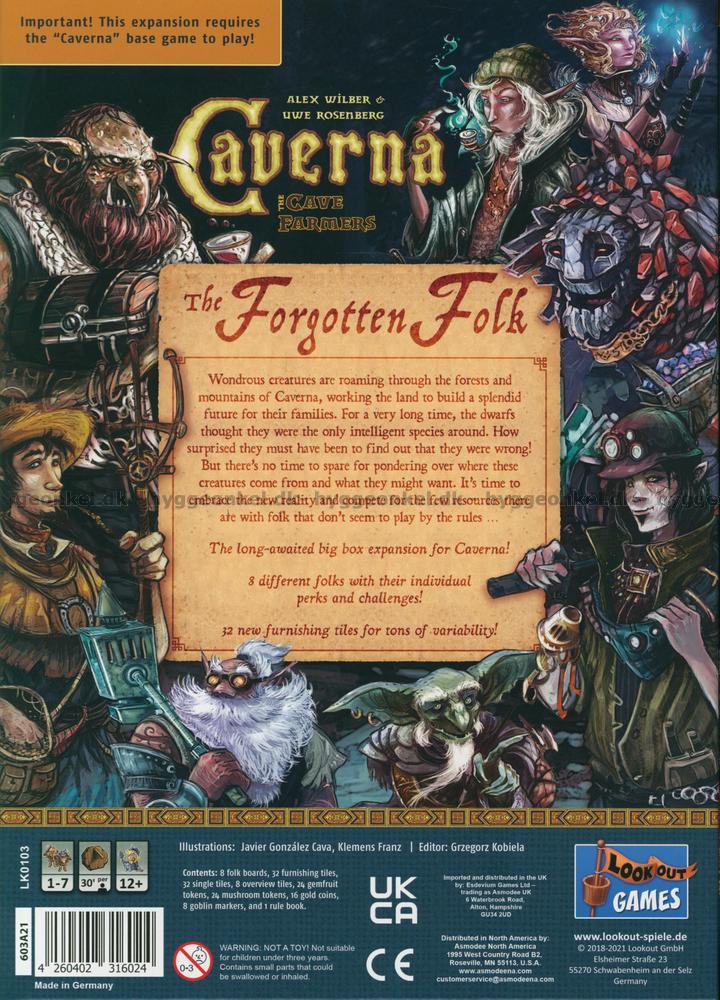 Forgotten Folk är en expansion till Caverna. Med expansionen kan man nu spela med åtta olika raser.