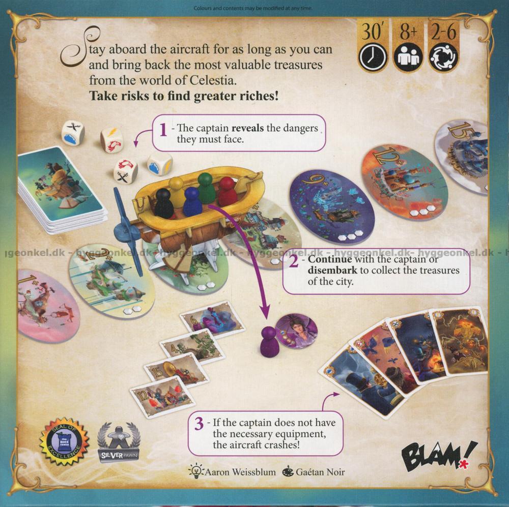 I Celestia får du gå ombord på ett luftskepp tillsammans med en skara äventyrare för att besöka Celestias många städer och där finna fantastiska skatter. Din resa kommer att vara riskfylld och ditt mål är att hitta de mest värdefulla skatterna!