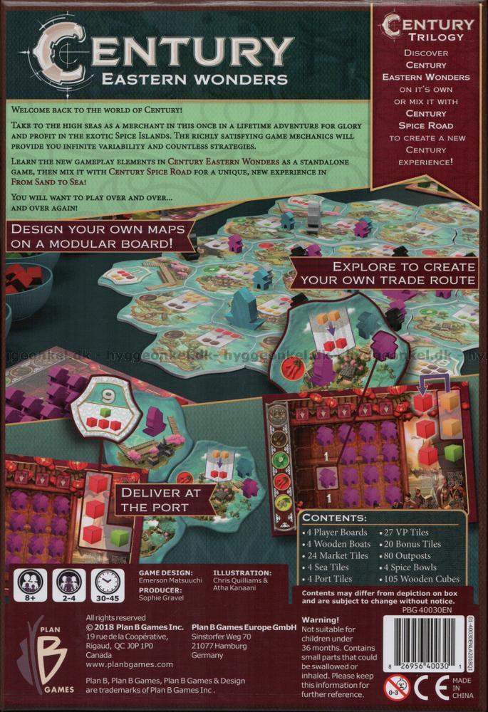 Century: Eastern Wonders är designat av Emerson Mastuuchi och bjuder på mer handel med värdefulla kryddor. Century: Eastern Wonders adderar nya spelmekanismer till speluniversumet, mekanismer som säkrar att spelet förblir nytt och spännande.