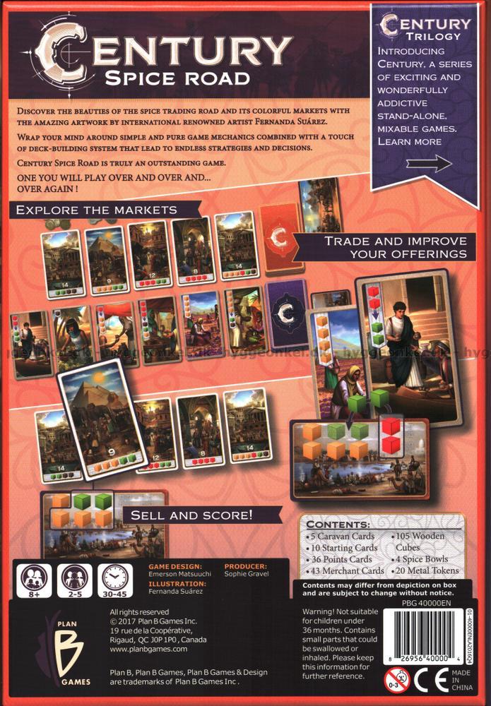 Se om du kan bemästra spelets enkla och rena spelmekanik som kombineras med ett element av deck-building som ger upphov till ett oändligt antal strategier och val. Century - Spice Road är ett fantastiskt spel, som du kommer att plocka fram om och om igen!