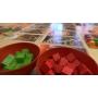 I spelet representeras kryddorna av olikfärgade kuber: saffran är rött, gurkmeja är gult, kanel är brunt och kardemumma är grönt.