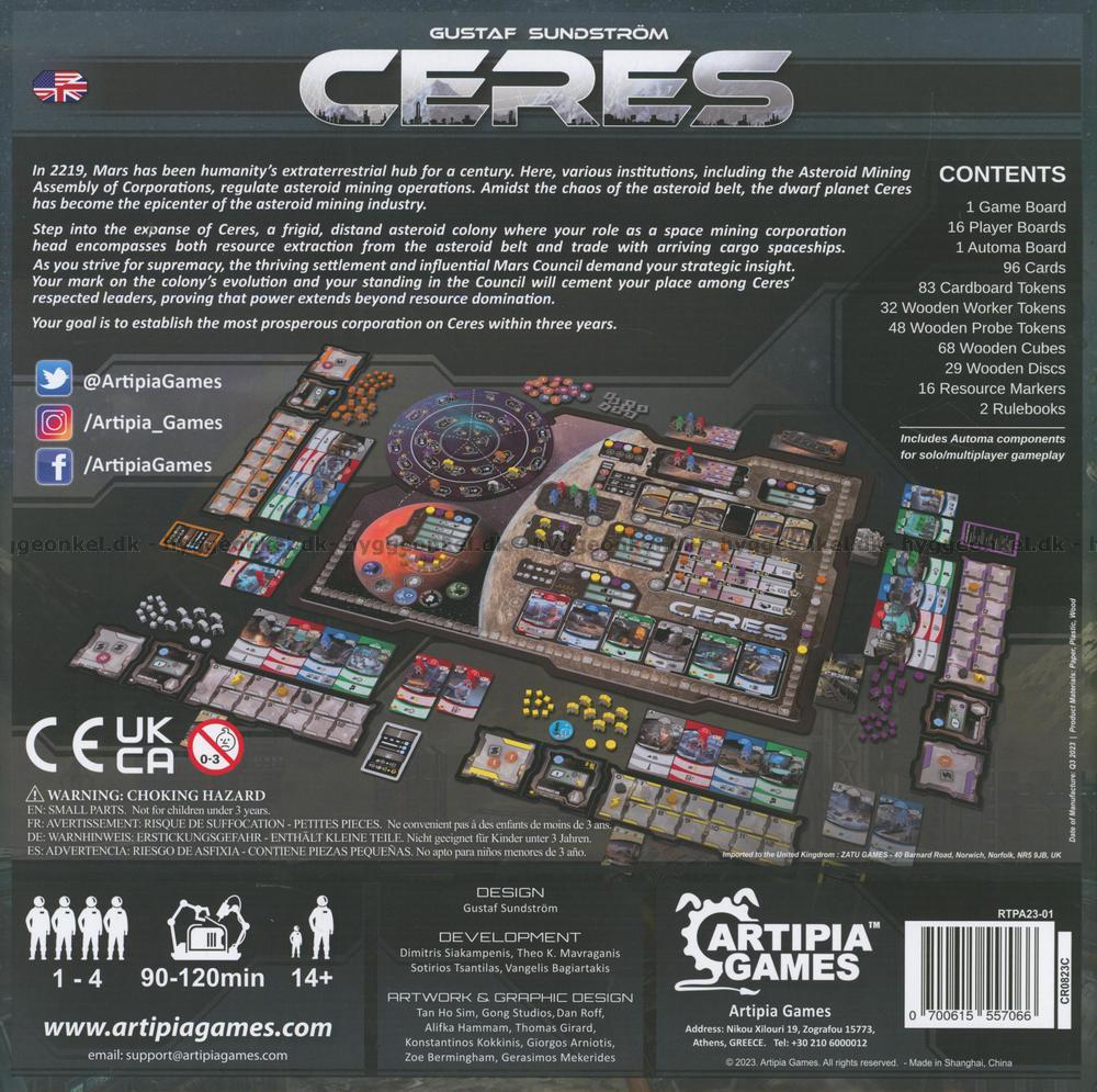 I Ceres får spelarna rollerna som ledare av de bolag som driver gruvdriften på planeten. Målet är att utmanövrera motståndarna och styra Ceres!
