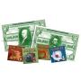 I asken finner du 5 hjälpkort (ett till vardera spelare), en mängd brickor, pjäser, kort och marker.