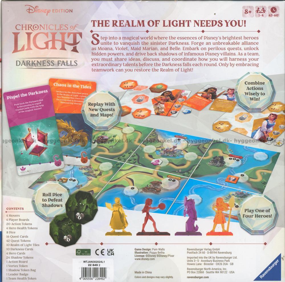 Chronicles of Light: Darkness Falls erbjuder en spännande upplevelse fylld med lagarbete och strategi. Ni kommer att navigera genom det vackra men farliga landet, utföra heroiska bedrifter och möta ondskans krafter ansikte mot ansikte. Med ikoniska Disney-hjältar som Belle, Violet, Maid Marian och Moana är detta spel en fantastisk resa in i en värld av ljus och skuggor, där endast samarbete och mod kan säkra segern.