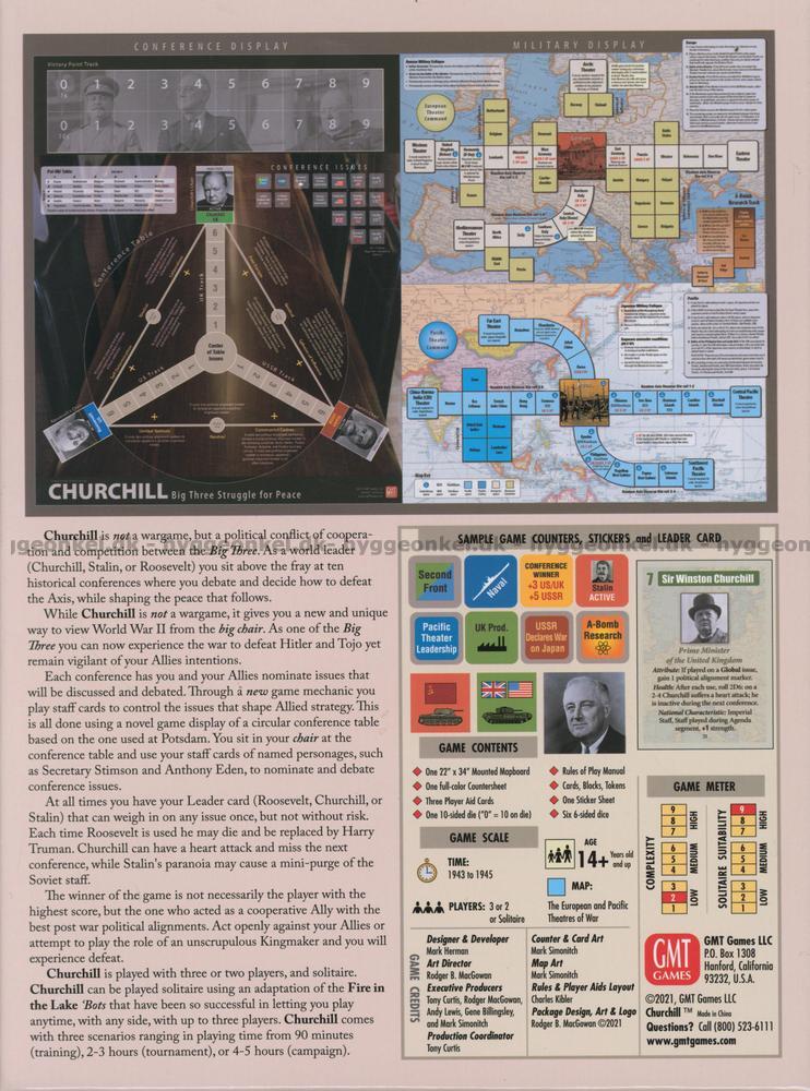 Churchill är ett semi-samarbetsspel. Det betyder att spelarna ska samarbeta för att vinna andra världskriget men också tävla mot varandra när det gäller att få övertaget i efterkrigsperioden.