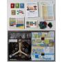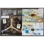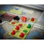 Spelbräde, kort, brickor i kartong, marker i trä, marker i plast och tärningar.