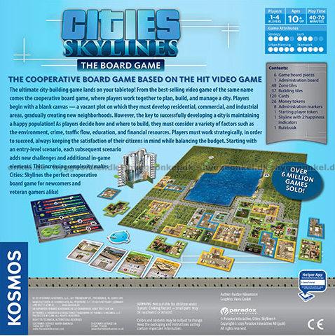 Cities Skyline har funnits länge som datorspel. Nu finns det också som brädspel. Här ska ni samarbeta om att bygga upp en blomstrande stad med nöjda invånare. Var ska skolor, parker och industrier placeras?