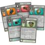 Kartbrickor, kort, tärningar, marker och pjäser.