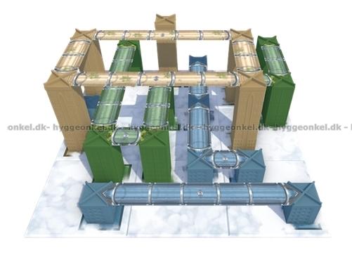 Planera din egen stad genom att strategiskt placera byggnader för att få ihop flest möjliga poäng och placera gångbroar mellan byggnaderna för att få röster från kommunfullmäktige.