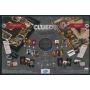 Spelbräde, kort, pjäser, brickor och tärningar.