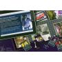 1 spelbräde, kort, pjäser, brickor och tärningar.