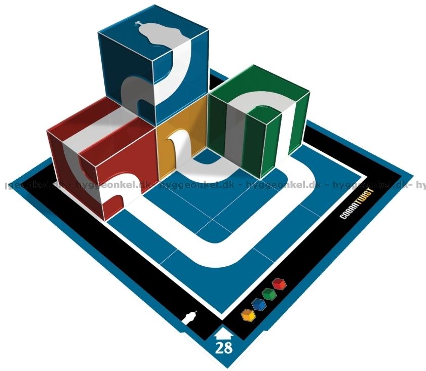 Den stora kobraormen slingrar sig över bordet. Kan du konstruera en tredimensionell orm med de fyra färgade tärningarna?