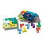 Spelet mäter 17 x 17 cm. Det innehåller spelbräde, 9 brickor i plast och 38 utmaningar.