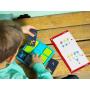 Spelplatta som mäter 15 x 15 cm, 5 brickor samt häfte med utmaningar.