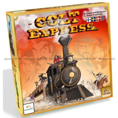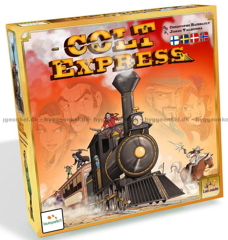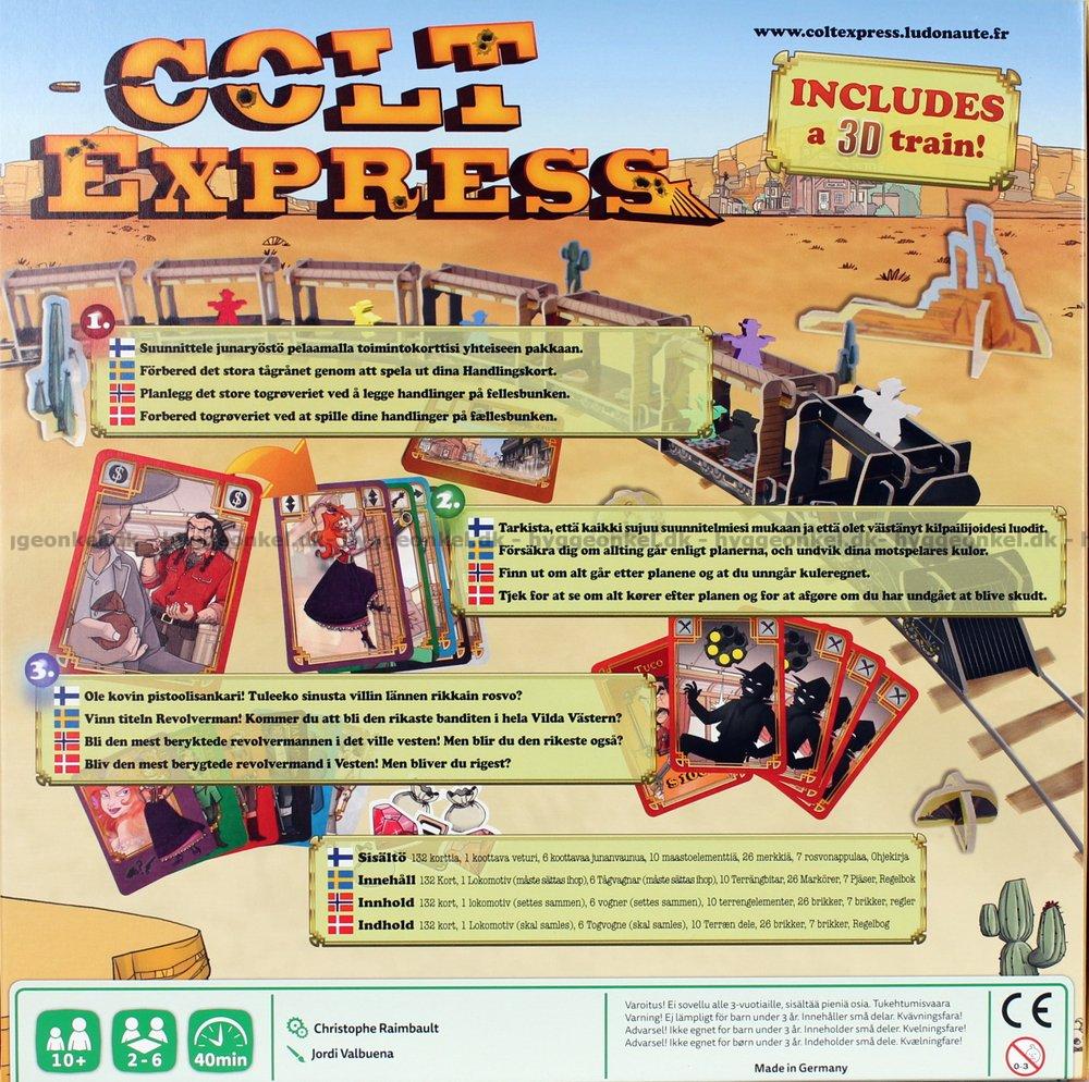 132 kort - 1 lokomotiv (ska monteras före den första spelomgången) - 6 tågvagnar (ska monteras...) - 10 terrängdelar - 26 marker - 7 cowboy meeples (pjäser).