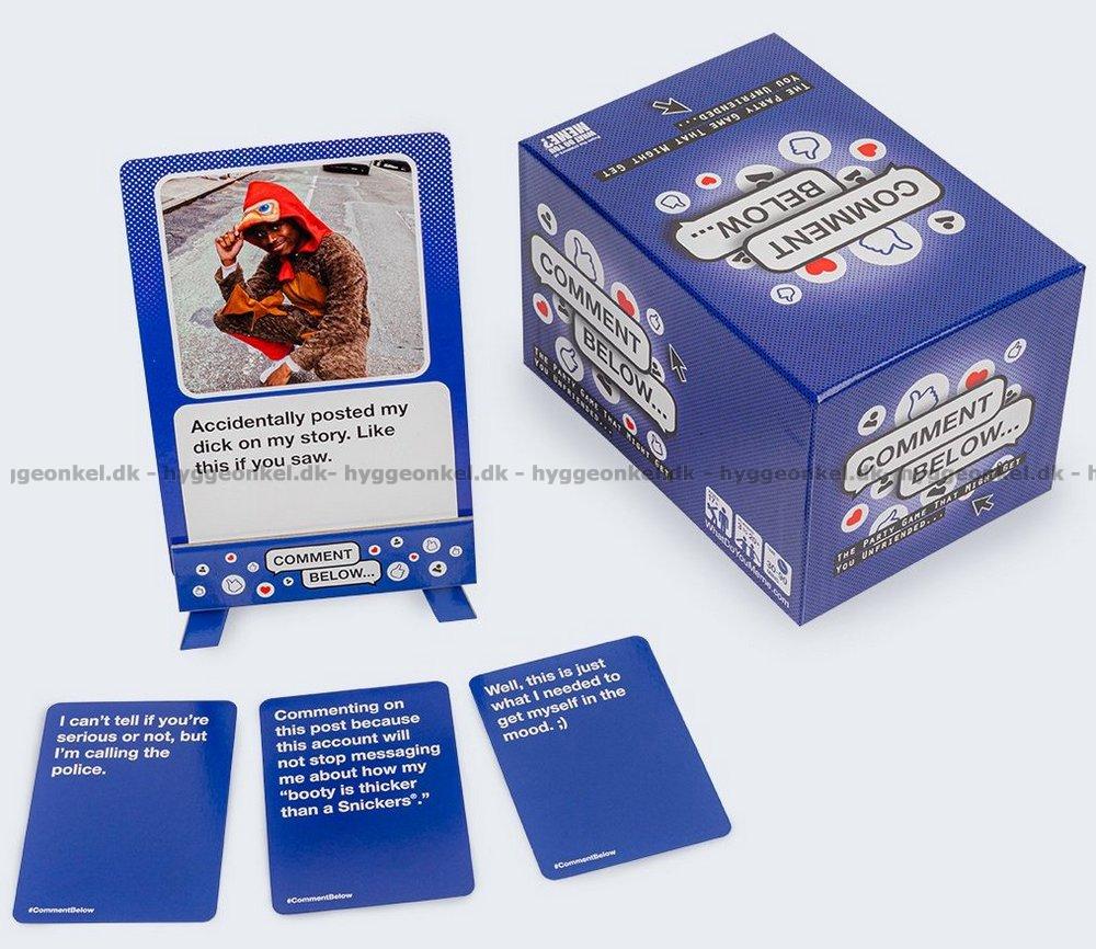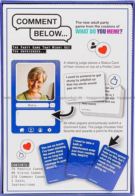 Comment Below är ett roligt festspel för vuxna (3-20 spelare) från skaparna av "What Do You Meme?".
