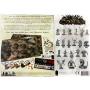 74 miniatyrfigurer i plast, kort, tärningar, marker och plastdiamanter.