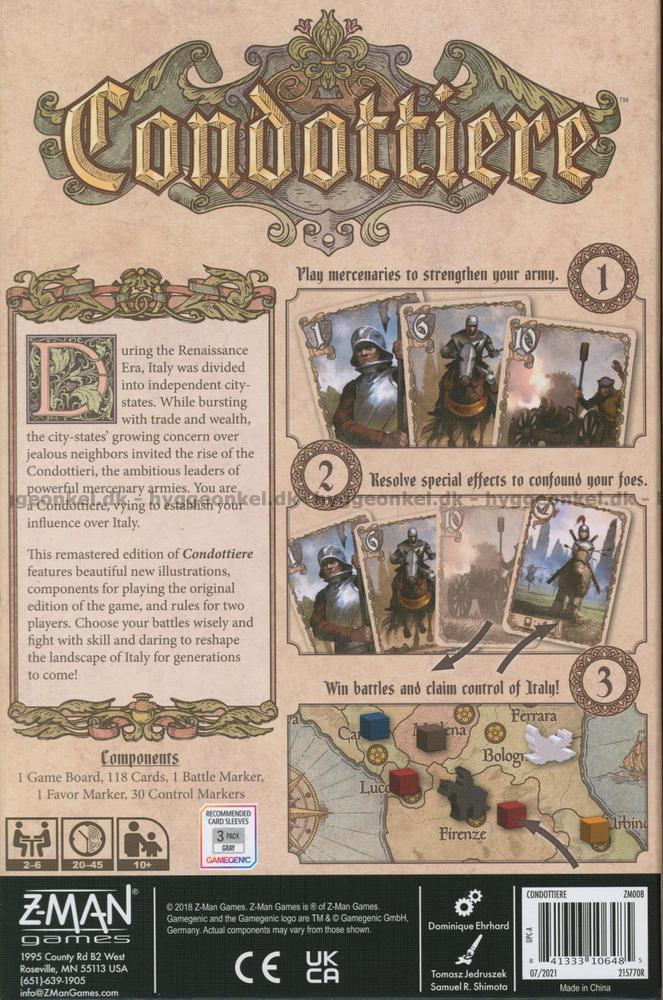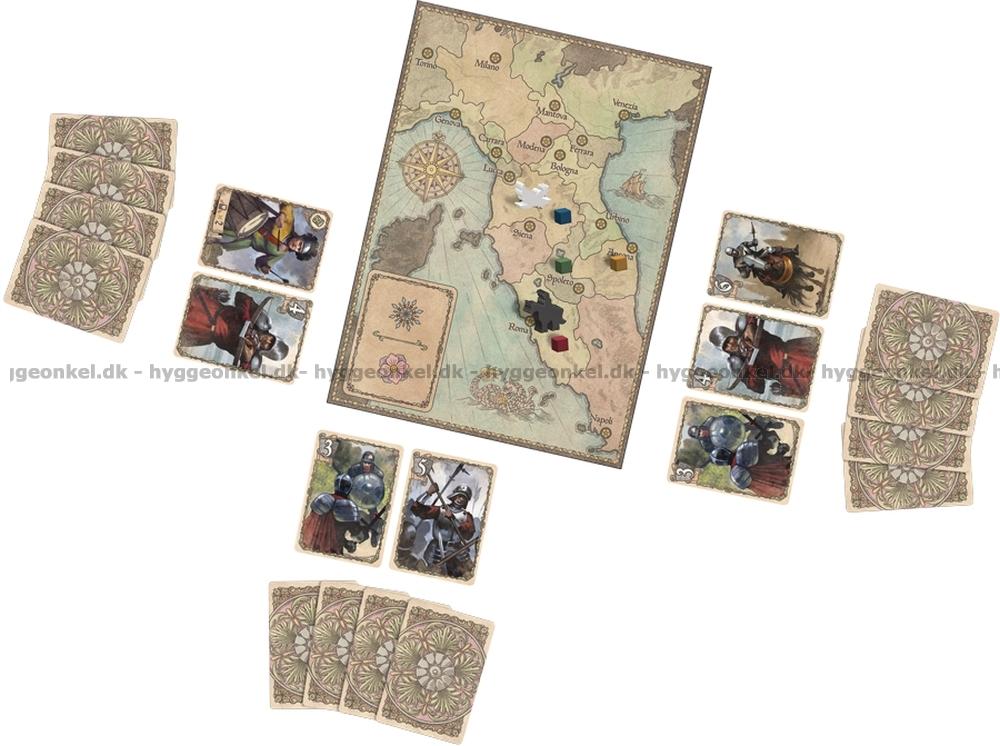 Använd ärelystna legosoldatkaptener, Condottieri, för att kämpa om makten över Italiens viktigaste städer i detta klassiska kortspel.