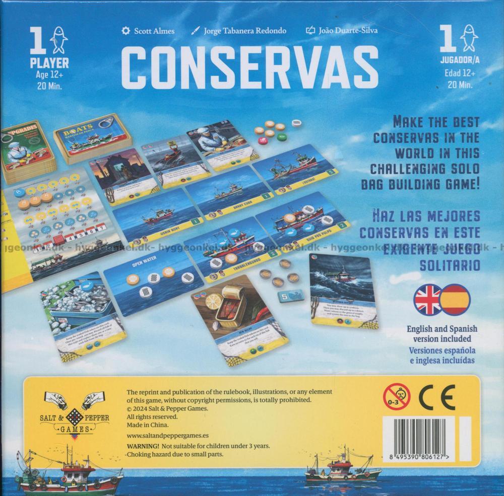 Conservas är ett strategiskt solospel där planering, eftertanke och timing är nyckeln till framgång. Det handlar inte bara om pengar, utan om ansvar – för miljön, för företaget och för havets rytm. Conservas bjuder in dig till en resa genom årstiderna vid havet, där varje beslut har betydelse.