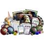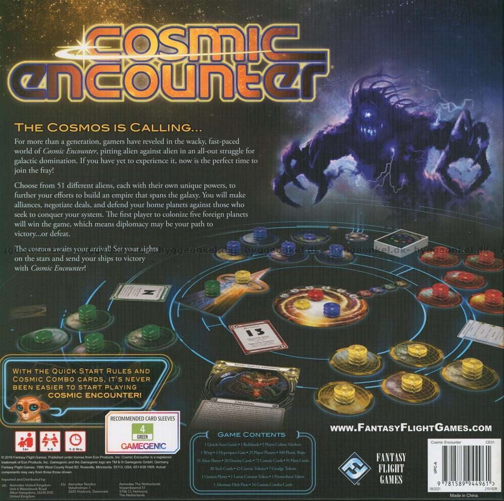 Lådan innehåller ett regelhäfte (på engelska), en mängd pjäser, kort och marker.