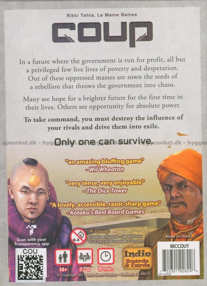 Coup är ett litet snabbt kortspel i stil med Resistance och Avalon (det är också skapat av samma personer).