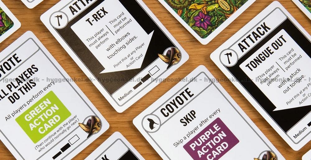 Spelmekaniken bygger på humor, rytm och förvirring, särskilt när Coyote- och Attack-kort börjar förändra reglerna och kräver att du t.ex. viskar dina rörelser, gör dem med armbågarna tryckta mot sidorna, eller upprepar tidigare handlingar.