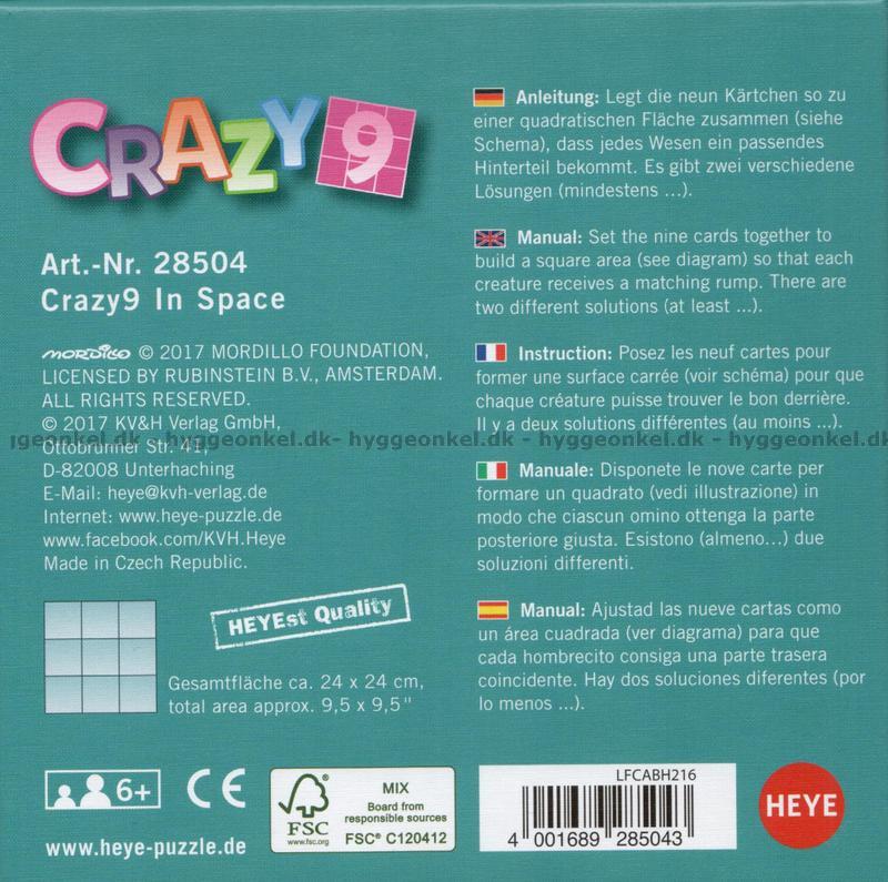 Crazy 9 är ett roligt och utmanande tänkarspel för 1 person. Givetvis kan man dock hjälpa varandra hur mycket man vill!